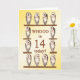 14th birthday card. Curious owls turning their heads to look at you and asking 'Who has a birthday today?'. A funny birthday card for anybody who likes owls. The owls shown are barn owls.