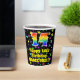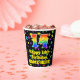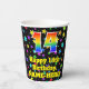 This exciting and joyful birthday themed paper cup design features a large number “14” with a rainbow spectrum gradient inspired pattern, along with the message “Happy 14th Birthday,”, and a customizable name. The background features a colourful pattern featuring many star shapes with different colours and sizes. Vibrant, colourful paper cups like this might be fun to use at a birthday party/celebration being held in celebration of somebody’s 14th birthday. [~Z0000540]