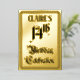 The front of this elaborate fourteenth birthday party/celebration foil invitation/announcement design features the message “14th Birthday Celebration” in luxurious script-style text. It also has an editable name. The back features personalized details about the event, such as the date, time, place, and any other important information. Elegant, luxurious, editable invitations like these might be used to invite guests to a birthday party being held in celebration of somebody’s fourteenth birthday. [~Z0000596]
