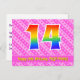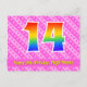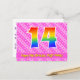 14th Birthday: Pink Stripes & Hearts, Rainbow 14 Postcard