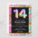14th birthday rainbow glitter colourful party invitation
