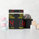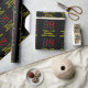 This fun and silly birthday-themed wrapping paper design features a large number "14" having a red seven segment digital display inspired appearance, along with the message "Happy 14th Birthday," and an editable name in geeky retro style yellow text, on a black coloured background. Wrapping paper like this might be used when wrapping gifts being given to somebody in celebration of their fourteenth birthday. [~Z0000387]