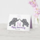 An illustrated 14th wedding anniversary card in purple, grey and white with an elephant couple.