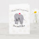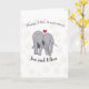 This unusual card has been designed for a couples fourteenth wedding anniversary, traditionally ivory. It features a background of ivory net with ivory flowers, two cute cartoon elephants, and editable text. A lovely card to team with a matching gift for a truly personal present.