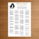 This “150 Funny Penguin Greeter Wedding Seating Chart” is alphabetical and will fit 150 guests. Your guests find their places, and they can enjoy your special celebration.