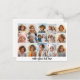 Use 15 photos to create a personal photo collage postcard. This modern, clean layout includes a script text block to add a family name or other information. The background colour and fonts can be changed in the customize area.