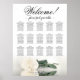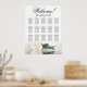 This exquisite wedding seating chart consists of 15 tables and showcases a romantic design featuring a single long-stemmed ivory, white, or cream coloured rose lying on its side and reflecting in a pool of water. The title, "Welcome! please find your table," is written in elegant script, while the names of the couple and the wedding date are displayed at the bottom. With space for 150 guests and 10 seats per table, this chart provides ample seating arrangements for your wedding reception. It is a fantastic way to add elegance, class, and style to your special day, while also helping your guests find their seats with ease.