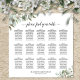 Ce tableau de 15 places mariage présente une aquarelle rustique peinte à la main avec des sprigs de feuilles d'eucalyptus, de la verdure et du feuillage dans les tons de sauge et de vert mousse. Le titre élégant de calligraphie de script dit : S'il vous plaît trouver votre table, et les noms du couple et la date mariage apparaissent en bas. Une façon merveilleuse d'aider vos invités à trouver leurs sièges tout en ajoutant élégance et style à votre réception. Comprend des places assises pour 150 personnes avec les traditionnels 10 places par table.