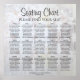 Faites de votre réception de mariage une belle avec ce tableau de sièges. Conçu dans le cadre de notre Suite de Mariage Réflexions Blanches, il présente du texte noir sur un arrière - plan reflétant des fleurs et des coeurs blancs. Ce graphique montre les affectations de table afin que vos invités aient un temps facile à trouver la bonne table.