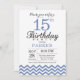 Invitation du 15e anniversaire avec Blue Chevron. Noir et blanc. Anniversaire enfant. Invitation Anniversaire garçon ou fille. Pour plus de personnalisation, cliquez sur le bouton "Customiser" et utilisez notre outil de conception pour modifier ce modèle.