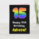 15th Birthday: Colourful Rainbow # 15, Custom Name Card
