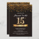 15th Birthday Invitation. Black and Gold Glitter. Adult Birthday Party Invite. Women or Men Bday Bash. For further customization, please click the "Customize it" button and use our design tool to modify this template.