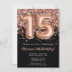 15th Birthday Invitation Black Rose Gold Glitter Elegant black and rose gold 15th birthday party invitation for a 15 year old girl with modern script writing and fun foil balloons.