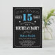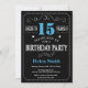 15th Birthday Invitation Blue and Black Typography. Chalkboard. Black and White Background. Adult Birthday. Male Men or Women Birthday. Kids Boy or Girl Lady Teen Teenage Bday Invite. 13th 15th 16th 18th 20th 21st 30th 40th 50th 60th 70th 80th 90th 100th. Any Age. For further customization, please click the "Customize it" button and use our design tool to modify this template.