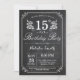 15th Birthday Invitation with Rustic Chalkboard Background and Floral Flower Pattern, Black and White. Adult Birthday. Male Men or Women Birthday. Kids Boy or Girl Lady Teen Teenage Bday Invite. 13th 15th 16th 18th 20th 21st 30th 40th 50th 60th 70th 80th 90th 100th. Any Age. For further customization, please click the "Customize it" button and use our design tool to modify this template.