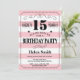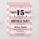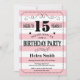 15th Birthday Invitation Pink and White Stripes Typography. Cheers to 15 years. Kids Birthday. Male Men or Women Birthday. Kids Boy or Girl Lady Teen Teenage Bday Invite. 13th 15th 16th 18th 20th 21st 30th 40th 50th 60th 70th 80th 90th 100th. Any Age. For further customization, please click the "Customize it" button and use our design tool to modify this template.