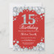 15th Birthday Invitation Red and Silver Diamond