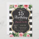 15th Birthday Invitation for girl teen lady. Black and Gold Birthday Party Invite. Gold Glitter. Pink Watercolor Floral Flower. Black and White Stripes. Chalkboard. Printable Digital. For further customization, please click the "Customize it" button and use our design tool to modify this template.