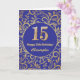 15th Birthday Navy Blue and Gold Floral Pattern Card