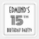 This luxurious and 1920s-1930s style inspired fifteenth birthday celebration square sticker design features a custom name, a fancy art deco look inspired number “15th”, the message “BIRTHDAY PARTY!”, and a multi-line border. Birthday themed stickers like these might be given out or used at a birthday party celebrating somebody’s fifteenth birthday, or perhaps used when wrapping gifts/presents or preparing invitations for such an event. [~Z0000618]