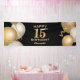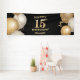 15th Birthday Party Black and Gold Balloons and Confetti Banner. For further customization, please click the "Customize it" button and use our design tool to modify this template.