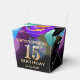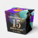 15th Birthday Party Black and Gold Colourful Balloons and Confetti Favour Box. For further customization, please click the "Customize it" button and use our design tool to modify this template.