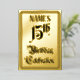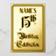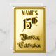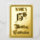 The front of this luxurious fifteenth birthday party/celebration foil invitation design features the message “15th Birthday Celebration” in opulent script-style text. It also features a customizable name. The back features personalized details about the event, such as the date, time, place, and any other information that may be important. Ornate, elaborate, customized invitations like these might be used to invite guests to a birthday party being held to honour somebody’s fifteenth birthday. [~Z0000596]
