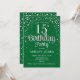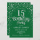 Elegant design in emerald forest green and faux glitter silver. Features stylish script font and confetti. Message me if you need custom age.