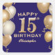 15th Birthday Party Navy Blue and Gold Balloons Square Sticker