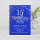 Elegant design in royal blue and faux glitter silver. Features stylish script font and confetti. Message me if you need custom age.
