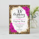 15th Birthday - Pink Gold Leopard Print Invitation