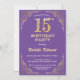 15th Birthday Purple and Gold Glitter Frame Invitation
