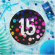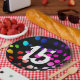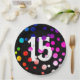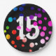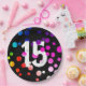 15th Birthday Rainbow Dots on Black Paper Plate