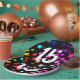 Neon rainbow dot pattern on black background for 15th birthday party.