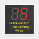 This fun and geeky birthday-themed paper napkin design features a large number "15" having a red seven segment digital display style appearance, along with a customizable name and the message "15th Birthday Party!" in nerdy computing-inspired yellow text, on a black coloured background. Birthday themed paper napkins like this might be used when celebrating somebody’s fifteenth birthday. [~Z0000388]