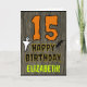 The front of this spooky and scary Hallowe'en birthday themed greeting card design features a large number "15", along with the message "HAPPY BIRTHDAY,", and a personalized name. There are also depictions of a ghost and a bat on the front. The inside features an editable birthday greeting message, or could perhaps be cleared and left blank if a message is to be written by hand instead. A personalized birthday card like this might be a fun way to send a message in celebration of somebody’s fifteenth birthday that also falls on October 31st (Halloween). [~Z0000410]