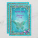 Cherchez-vous une magnifique invitation à célébrer votre 15e anniversaire en style ? Ne cherchez pas plus loin que cette invitation à la fête de Quinceanera branchée qui présente un design élégant et moderne avec une élégance sophistiquée. L'invitation a un bel arrière - plan vert turquoise avec des diamants scintillants et des bijoux éclatants de bling bling. L'avant de l'invitation présente un magnifique papillon aux ailes violettes et à la couronne d'argent. L'arrière de l'invitation a un design assorti à l'espace pour vous de le customiser avec vos informations. Vous pouvez utiliser cette invitation pour les parties Quinceanera ou Sweet 16. Cette invitation vous impressionnera et rendra votre journée spéciale inoubliable.