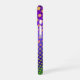 Cette coque a un design avec des motifs décoratifs branchés. Les couleurs principales sont le violet, le vert et le jaune. Ce produit peut être customisé en ajoutant du texte.