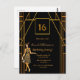 Elégant faux or et glam pour une fête de 16ème anniversaire! Une invitation à la fête d'anniversaire de style art déco en faux or et noir pour une fête glamour. Décoré d'une fille à flapper de style années 1920 devant. Modèles de 16 ans, nom et pour vos informations de fête.