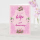 A 16th anniversary card for your wife. An elegant tracery in pink sets of the four pink roses. The background is a pale pink pattern of flowers. A lovely card to send to your wife on your wedding anniversary.