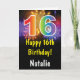 16th Birthday Colorful Rainbow Fireworks Card with personalized name. For further customization, please click the "Customize it" button and use our design tool to modify this template.
