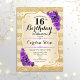 16th Birthday - Gold Stripes Purple Roses Invitation