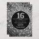 16th Birthday Invitation Black and Silver Glitter