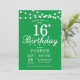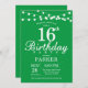 16th Birthday Invitation with String Lights. Green Background. Kids Birthday. Boy or Girl Lady Elegant bday Invite. 13th 15th 16th 18th 20th 21st 30th 40th 50th 60th 70th 80th 90th 100th, Any age. For further customization, please click the "Customize it" button and use our design tool to modify this template.
