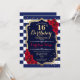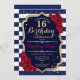 Elegant navy white red design with faux glitter. Navy and white stripes with red roses. Perfect for an elegant birthday party.