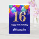 16th Birthday Navy Blue and Gold Colourful Balloon Card