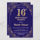 16th Birthday Navy Blue and Gold Glitter Frame Invitation