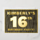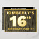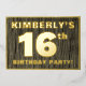 The front of this bold sixteenth birthday party/celebration foil invitation card features an editable name, a large number “16th”, the message “BIRTHDAY PARTY!”, and a border, all in foil. There is a rustic, yet sophisticated, faux wood grain look inspired pattern for the background of the front. The back features personalized details about the event, such as the date, time, location/venue, and any other information that may be useful. Editable invitations like these might be used to invite attendees to a birthday party being held to celebrate somebody’s 16th birthday. [~Z0000598]