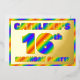 The front of this upbeat sixteenth birthday party foil invitation card features an editable name, a large number “16th”, the message “BIRTHDAY PARTY!”, and a border, all featuring a vibrant, multicolored, rainbow spectrum inspired gradient pattern. The back features personalized details about the event, such as the date, time, location/venue, and any other information that may be important. Exciting, joyful, personalized invitations like these might be used to invite guests to a birthday party being held to honour somebody’s 16th birthday. [~Z0000593]