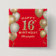 16th Birthday Party Red and Gold Balloons and Confetti Button. For further customization, please click the "Customize it" button and use our design tool to modify this template.